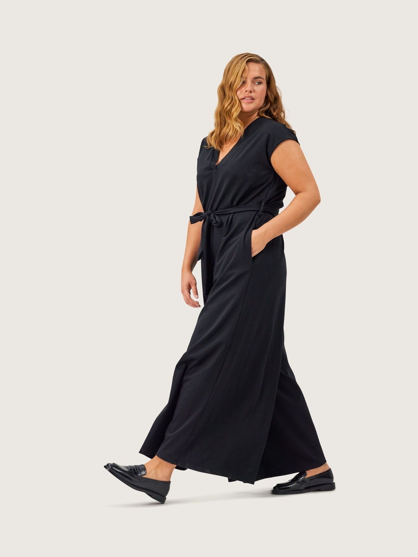 Mød Sia; vores elegante buksedragt i en lækker viskose jersey, der bevæger sig med dig. Sia sidder på skulderen og er skåret, så den sidder til på overkroppen og omkring taljen, hvorefter den falder ned i vide ben. Sia har lommer og et medfølgende bælte, du kan sætte højt eller lavt i taljen - alt efter din personlige smag. Buksedragten er dog designet til også at kunne bruges helt uden bælte. Sia kan styles med høje hæle for et sofistikeret look eller med sneakers for en afslappet og trendy stil. Tilføj dine egne accessoires for at fuldende looket og gøre det personligt. Sia er den perfekte kombination af stil, elegance og lethed.
